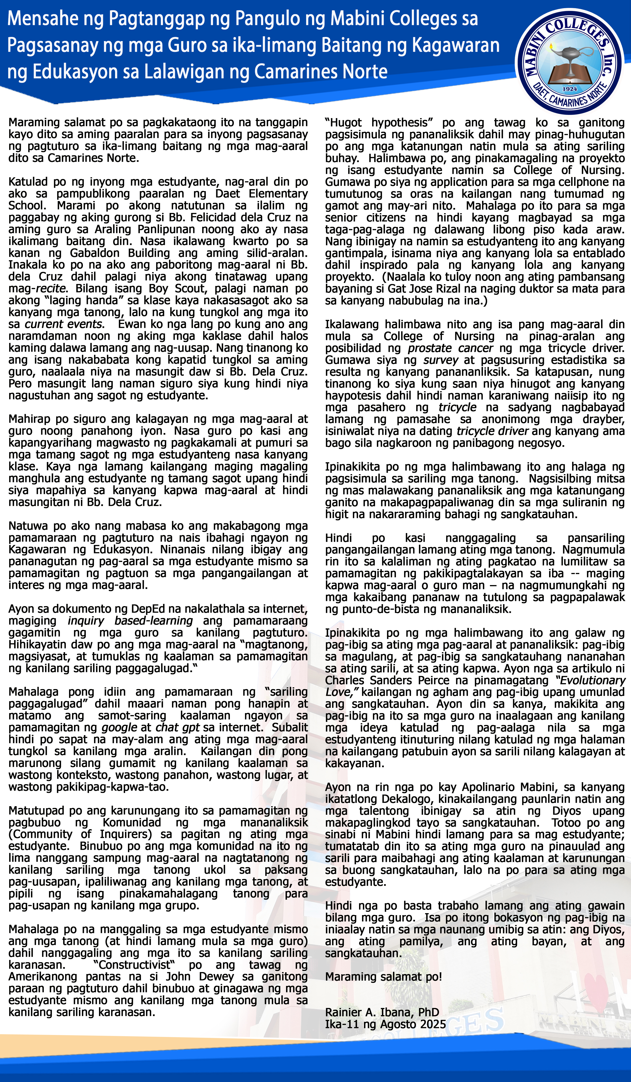 MABINI COLLEGES, INC.Governor Panotes Avenue,Daet, Camarines Norte,PHILIPPINESTel.: (054) 721–1281Fax: (054) 721-5743Email:mabinicollege@hotmail.com
