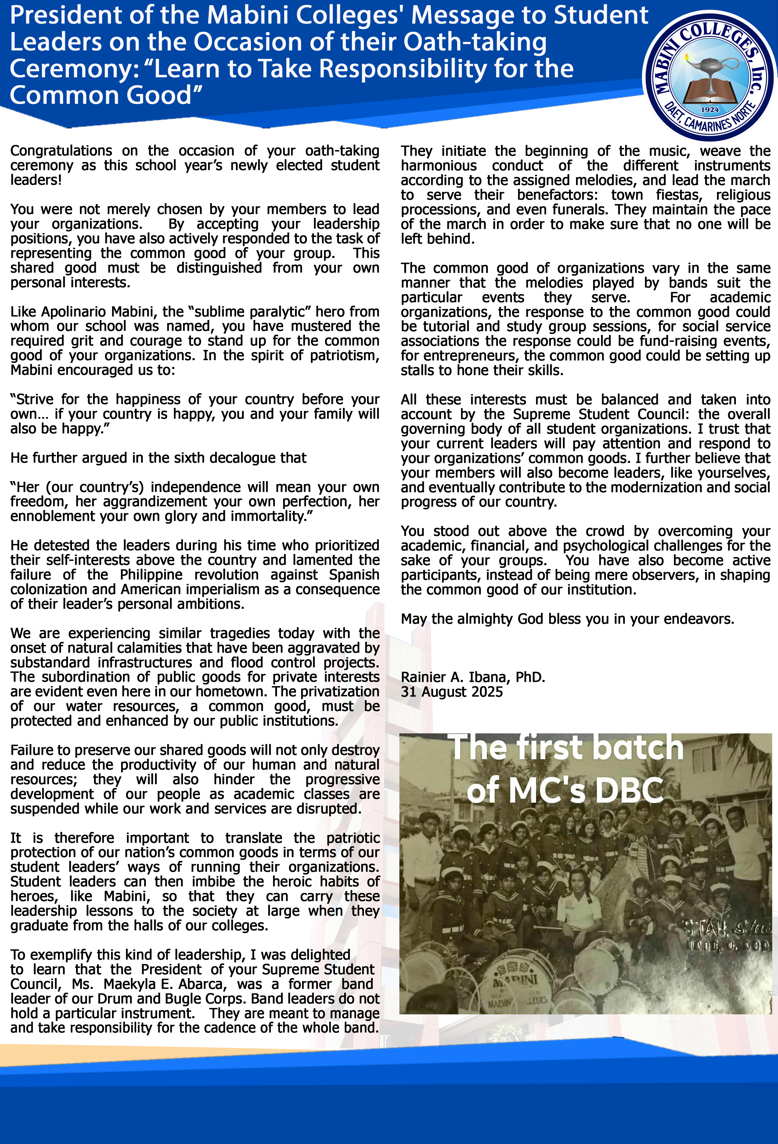 • A Graduation Message to the Mabini Colleges' Graduating Class of 2025
