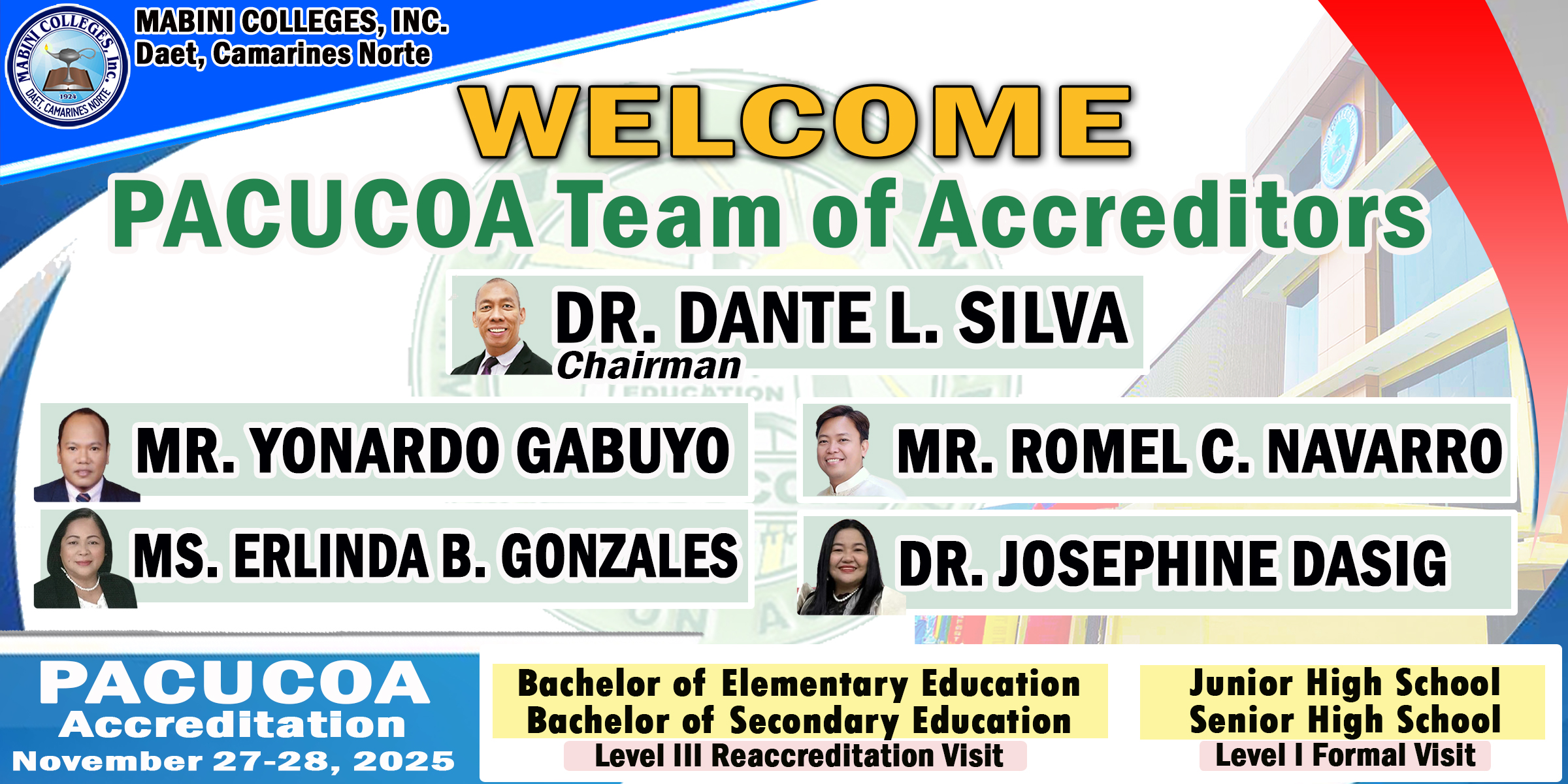 Mabini Colleges, Inc. is a private, non-sectarian institution of higher learning which is located along Governor Panotes Avenue in Daet, Camarines Norte.