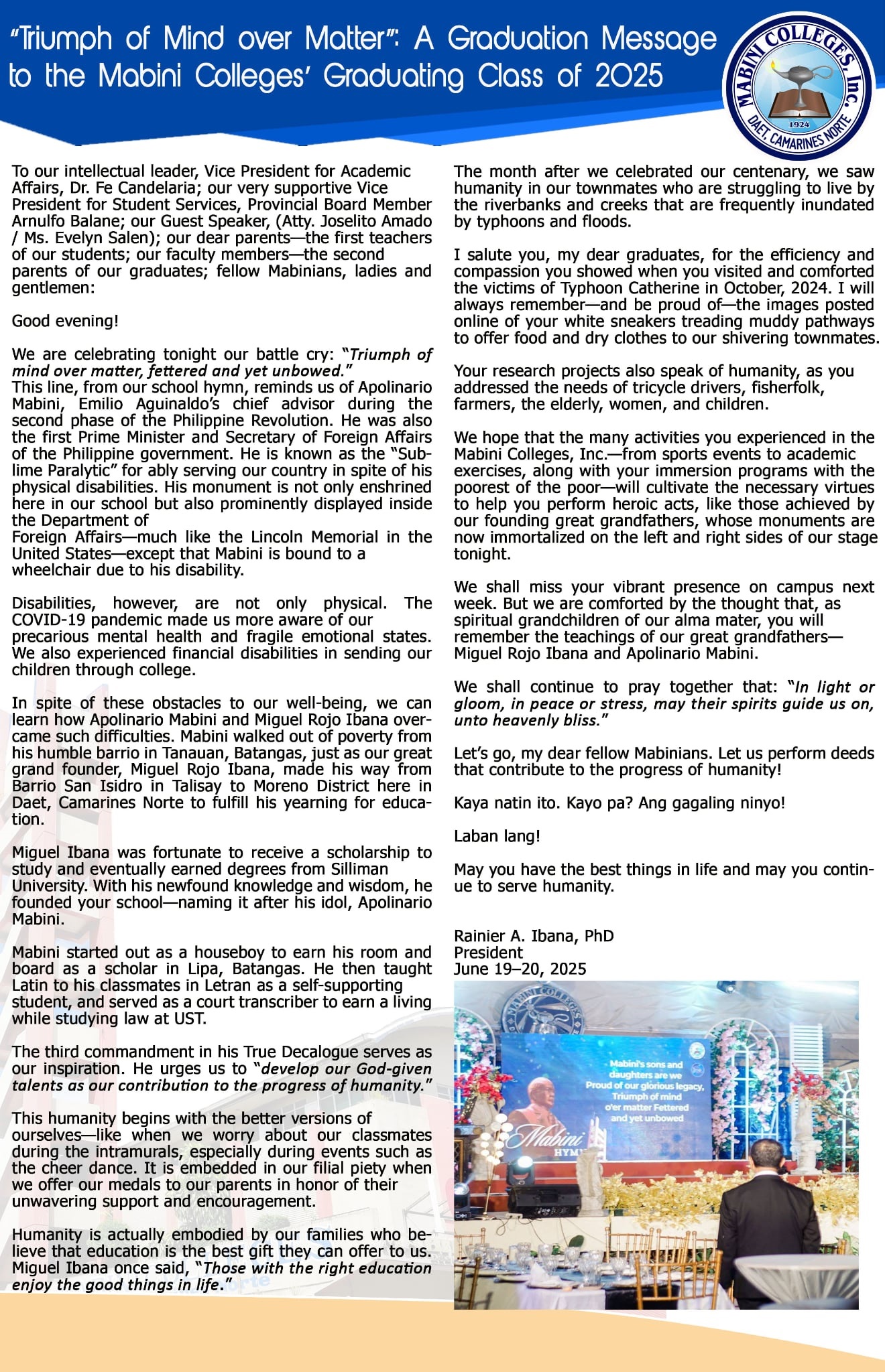 • A Graduation Message to the Mabini Colleges' Graduating Class of 2025