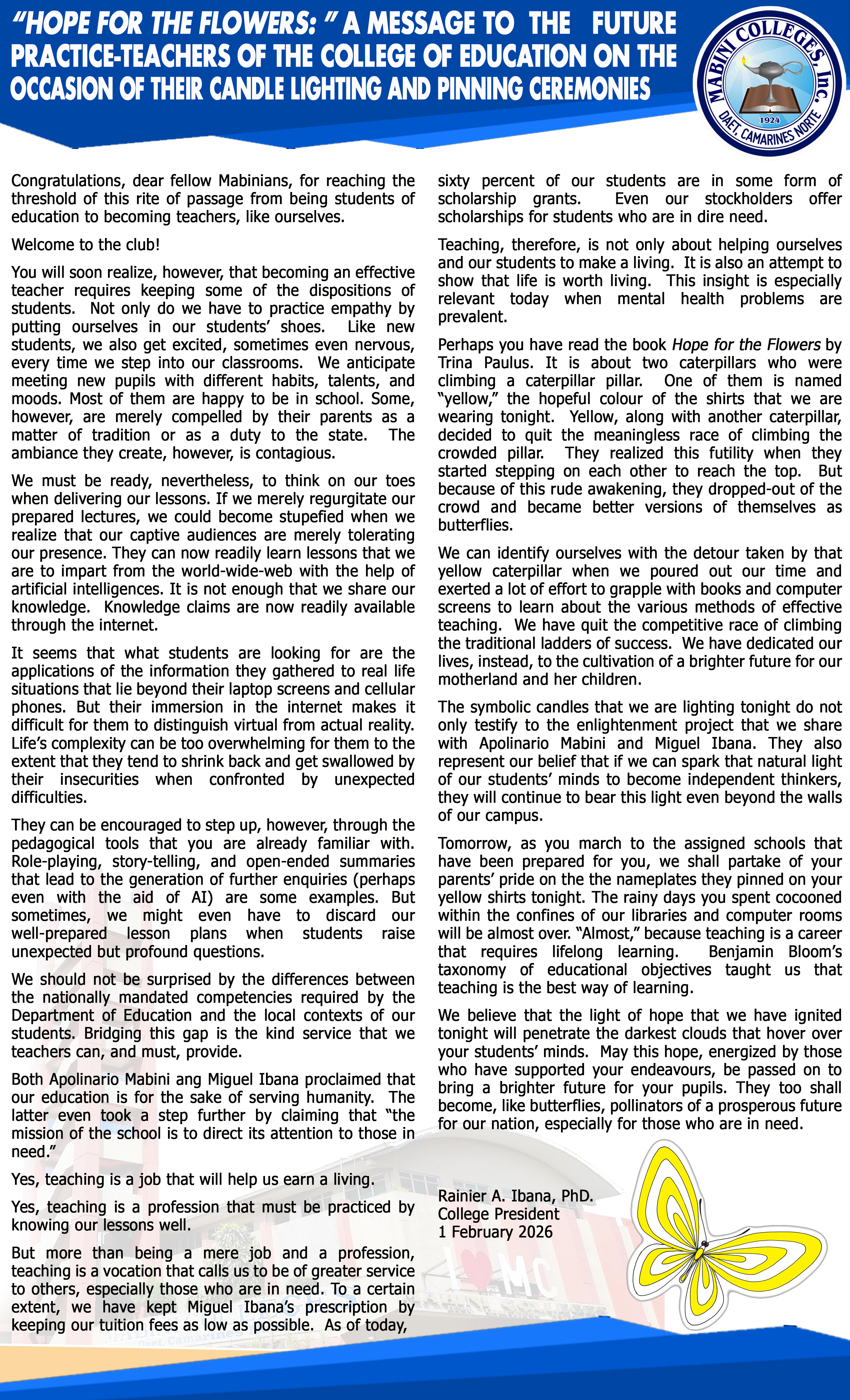 MABINI COLLEGES, INC.Governor Panotes Avenue,Daet, Camarines Norte,PHILIPPINESTel.: (054) 721–1281Fax: (054) 721-5743Email:mabinicollege@hotmail.com