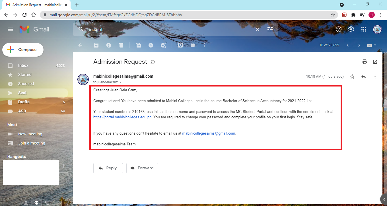 Note: Once the admission is approved, another email will be sent to notify and to guide you on how to access the MC