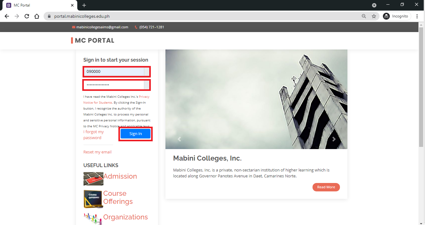 Note: For those students who forgot their account, you can follow the Reset Account/Forgot Password guide.